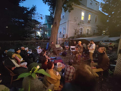 Soiree is feeling more like a community happening, welcoming in fresh and familiar faces, hosting an overlapping of many circles: folks from songful Shabbat gatherings, my improv classes, Milly’s circle singing community, contact improv and more. Here’s to more collaborative creativity! More flowering relationships and community connections. People loved the outdoors. I did too.